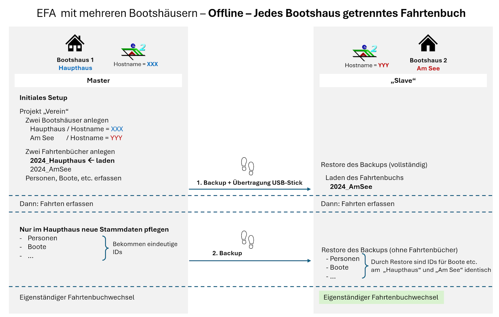 Wenn efa in mehreren Bootshäusern betrieben werden soll, müssen einige Dinge beachtet werden: