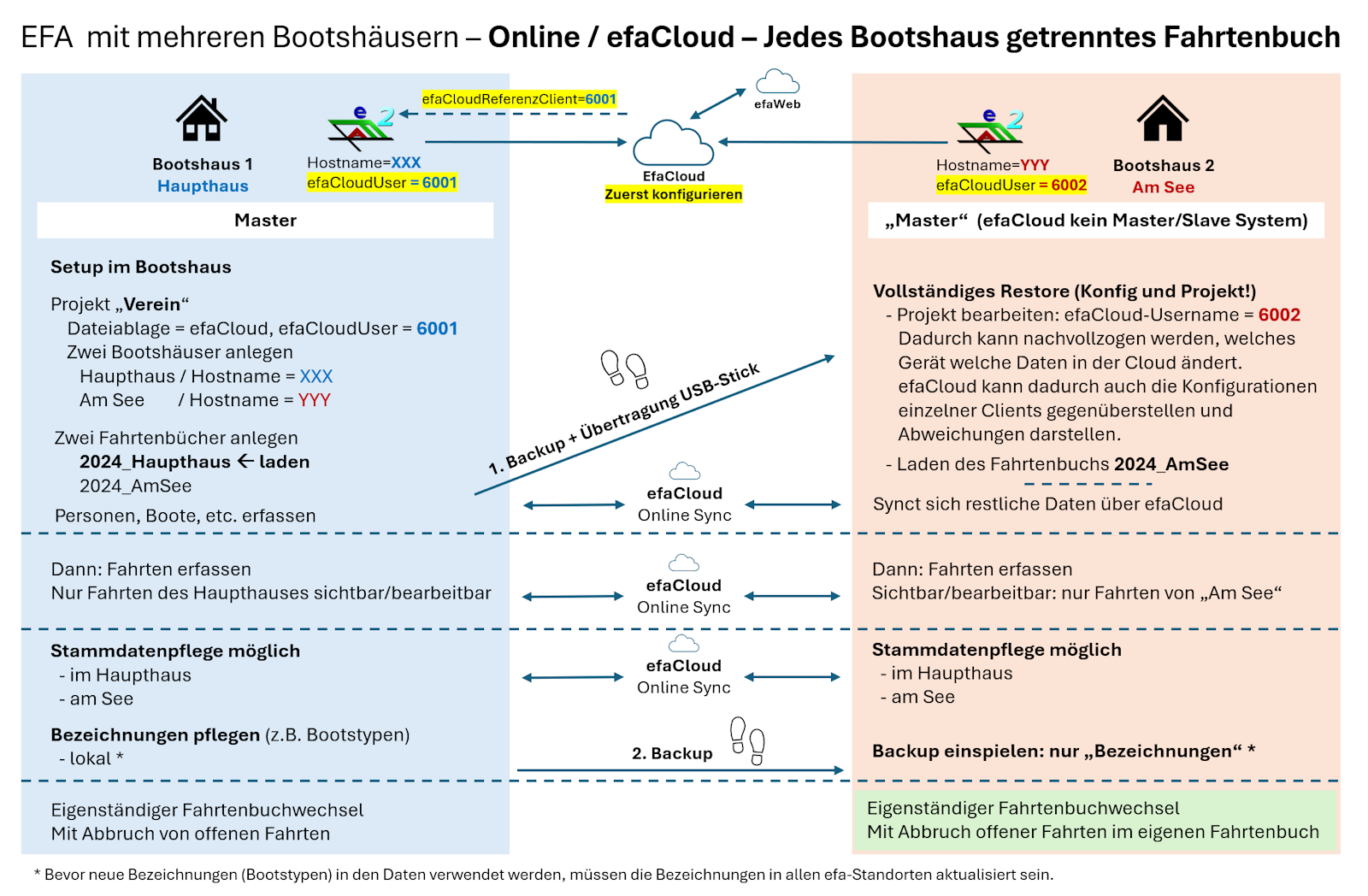 Folgende Schritte sind zum Einrichten von efa in mehreren Bootshäusern erforderlich: