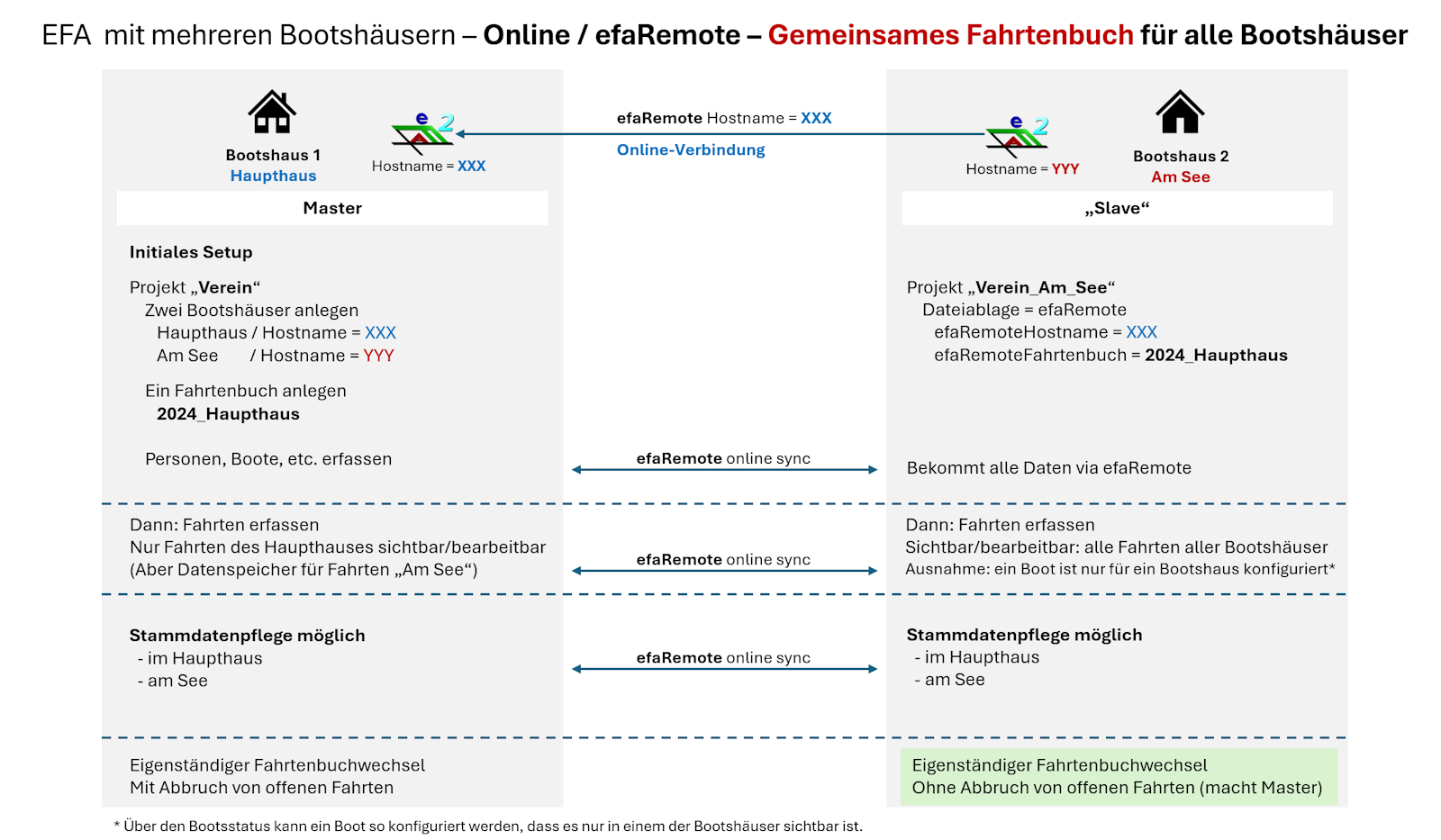 EfaRemote, mehrere Bootshäuser, EIN GEMEINSAMES Fahrtenbuch